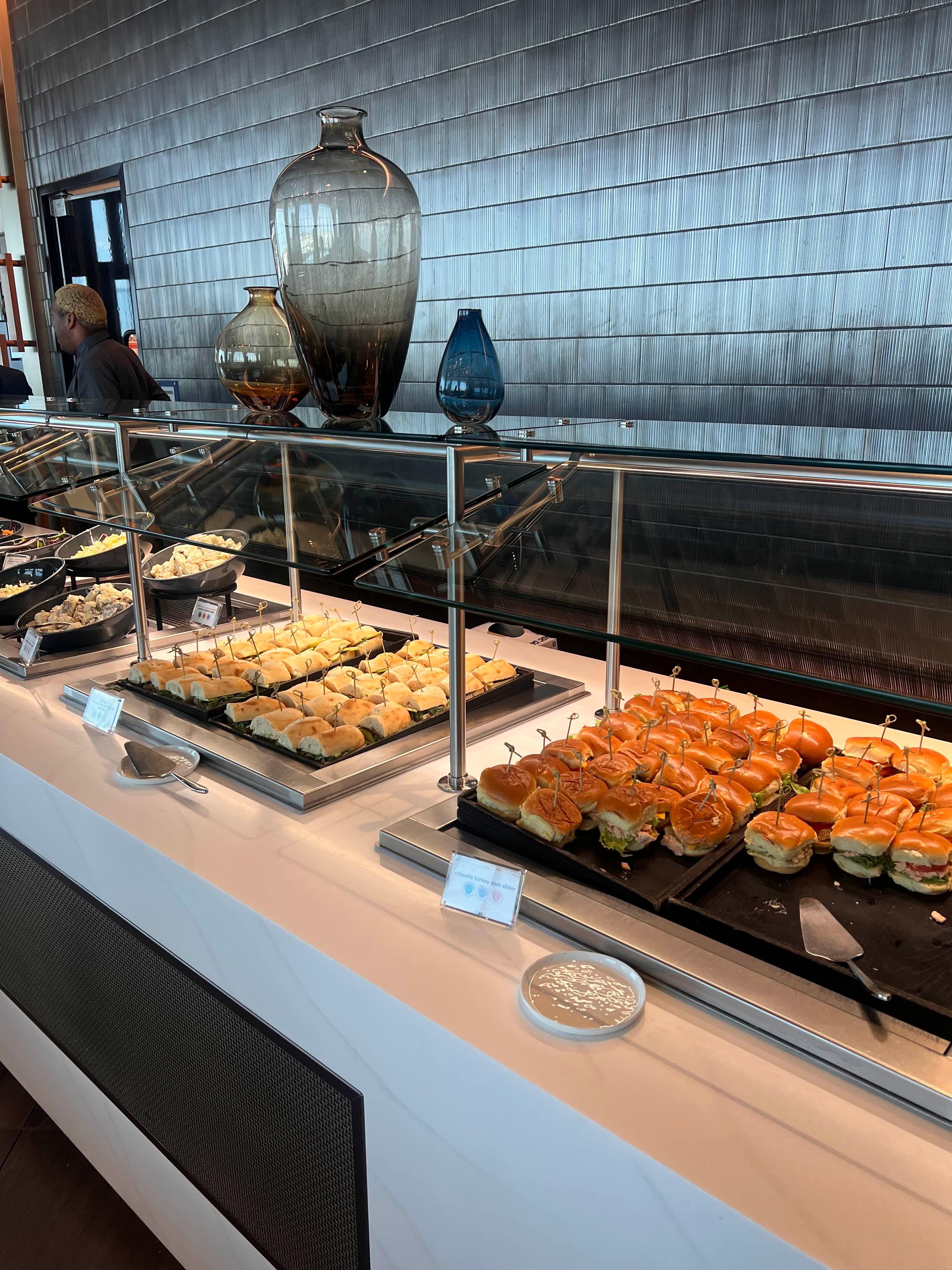 시카고 델타 라운지가 리뉴얼 되었다고 들었는데 크고 휴식하기 너무 좋았다. 음식종류도 생각보다 많고 칵테일도 6종류정도? 그리고 와인도 2종류정도 있었다.